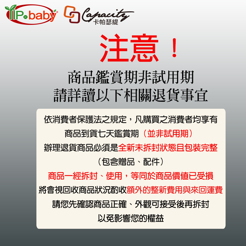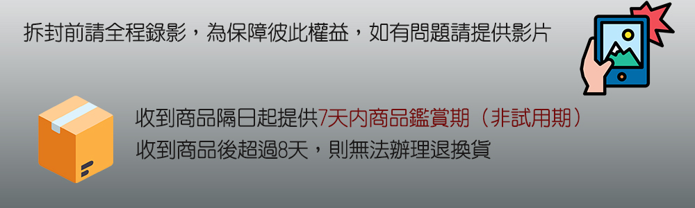 ※鑑賞期非使用操作期,商品如經拆封、使用或拆解,以致缺乏完整性及失去再販售價值,恕無法退貨