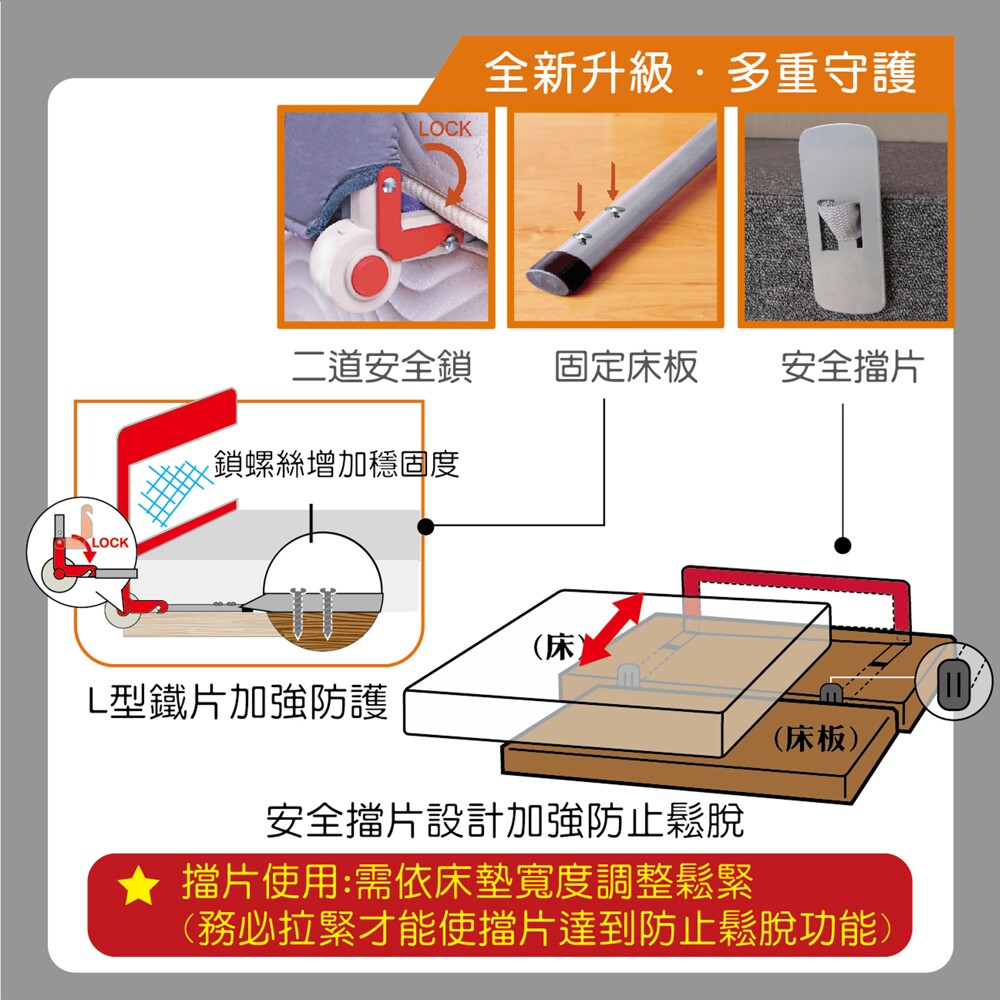 ※提醒您床欄只適合寶寶睡覺時使用,不適合寶寶遊戲時的護欄